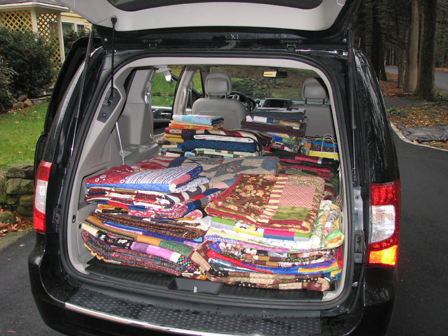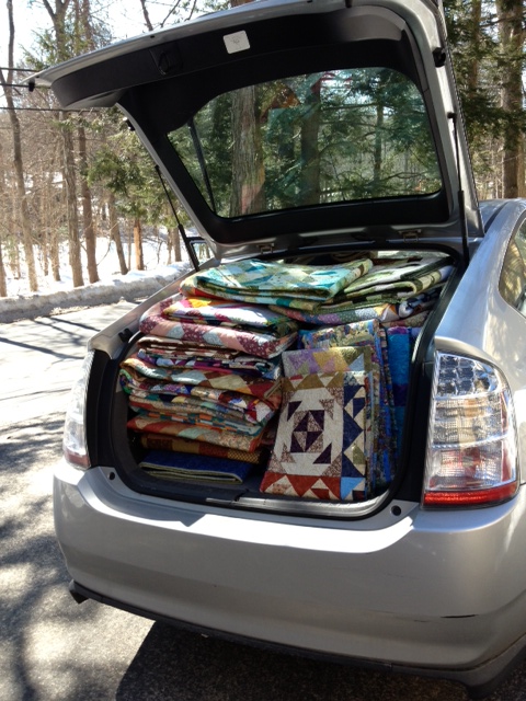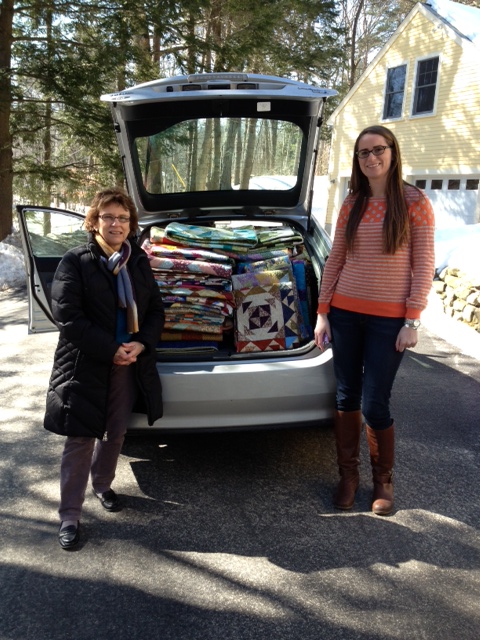 Barb and Maggie from One Fund Boston filled their Prius with the remaining quilts to transport them to Boston for distribution.