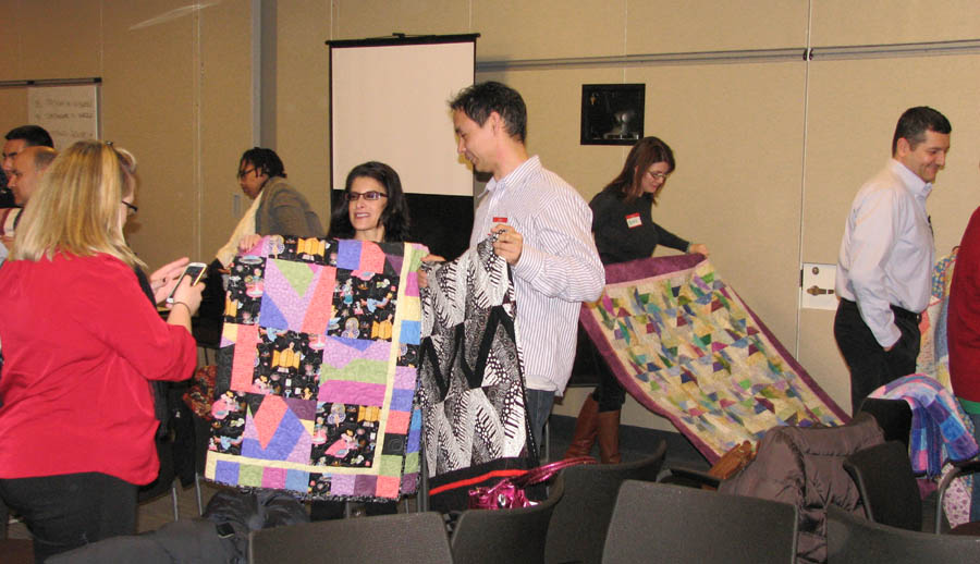 Photos of the holiday event on December 2 at Spaulding Rehab Hospital are below with survivors picking out quilts of their own at the end of the evening. There were such smiles and excitement! It was awesome to be a part of such a wonderful group of people even for a short time.